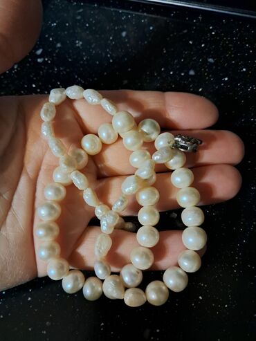 Təbii mirvari. Uzunluğu 45 sm Təbii formada düzümlü mirvari boyunbağı - Material: təbii (barok) mirvari muncuqlar, krem-ağ rəng tonları, parıltılı səth - Dizayn: müxtəlif ölçü və formalı mirvari d...Giriş•Qeydiyyat