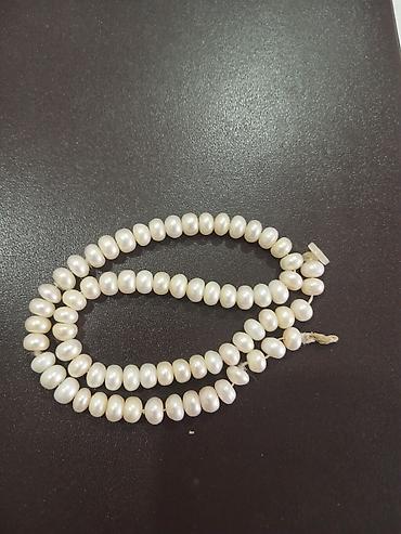 Təbii mirvari boyunbağı - Material: Təbii, düzensiz (barok) formalı krem-ağ rəngli mirvari dənələri - Dənələrin ölçüsü: təxmini 6–8 mm arası, yumru/oval qarışıq formalar - Parıltı: yumşaq incə tər...