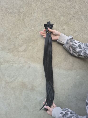 Təbii insan saçı – qara rəngdə, uzun tel dəstəsi. - Uzunluq təxminən bel səviyyəsinə qədər (təqribən 60–70 sm).100- 120 qr - Qalın və sıx dəstə, ucları lif-lif ayrılmadan bütöv toplanıb. - Boyanmam...