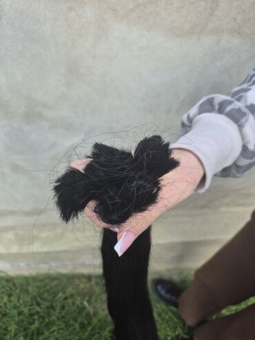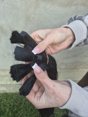Təbii insan saçı – qara rəng, uzun və sıx - Material: 100% təbii insan saçı - Rəng: təbii qara - Tip: kəsilib hörgü şəklində toplanmış quyruqlar (extensions/istehsal üçün uyğundur) - Uzunluq: ölçü...