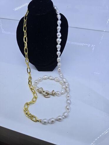 Təbii okean Baroko mirvari kolye boyunbağı 12-16mm böyük mirvaridi .sep polad qaralmır qızıl kaplama ile uzunluğu 90sm