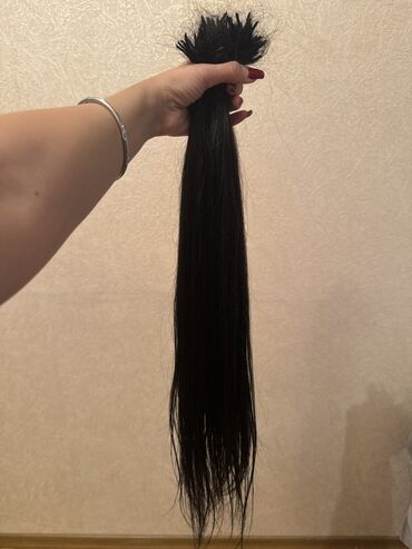 Təbii insan saçı – tünd qəhvəyi/şabalıd tonunda, qalın həcmlidir. Şəkildə ölçü xətti ilə göstərilib: təxmini uzunluq 55–60 sm civarında. Rəng tək tonlu, təbii parıltılıdır; 900e alinib 1 hefte taxi...