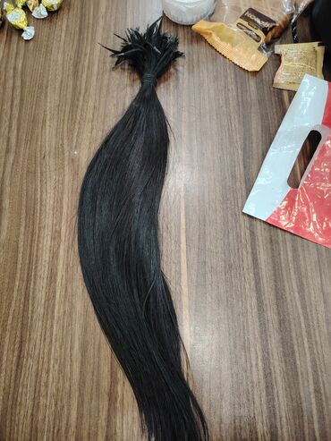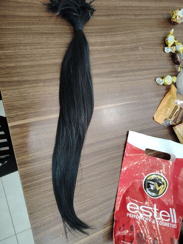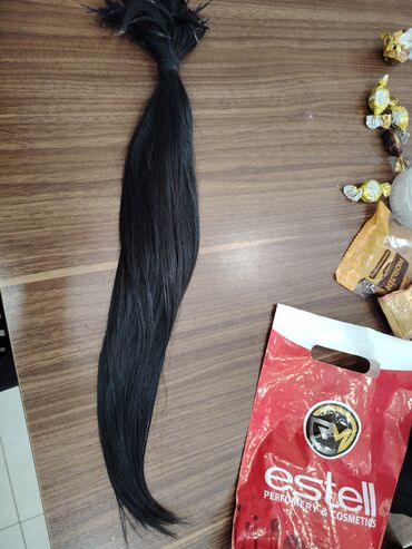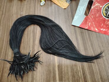 Təbii insan saçı – qara rəngdə, uzun tel dəstəsi. - Uzunluq təxminən bel səviyyəsinə qədər (təqribən 60–70 sm).100- 120 qr - Qalın və sıx dəstə, ucları lif-lif ayrılmadan bütöv toplanıb. - Boyanmam...
