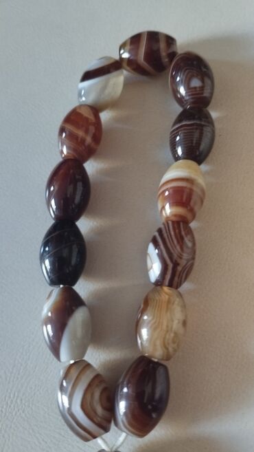 - Material: Yaxşı cilalanmış təbii əqiq/axat (zolaqlı oniks tipli) daş muncuqlar