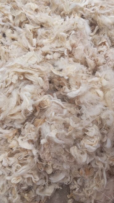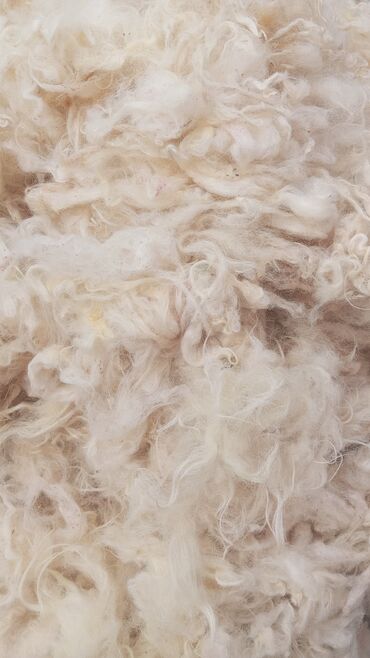 - Açıq krem/ağ rəng çalarlarında, uzun lifli, yumşaq teksturalı təbii qoyun yunu