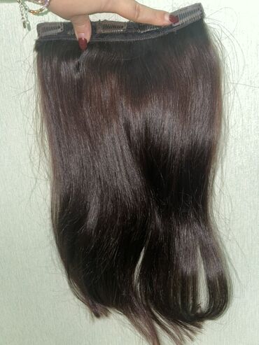 - NATURAL 100% təbii insan saçından tünd qəhvəyi rəngdə, düz saç cıt-cıt (clip-in).