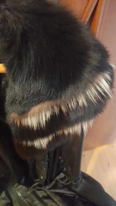 Qadınlar üçün şıq qışlıq kürk/palto - Material: qara süet tipli üstlük, iç hissəsi isti; təbii görünüşlü tük/kürk detalları - Yaxa: həcimli, qalın tüklü kürk yaxa - Dekor: ön hissədə və qollarda t...