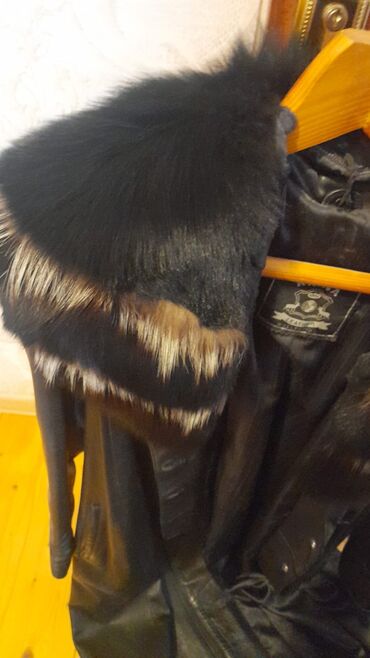 Şəkillərdə gördüyünüz model asqıda təqdim olunub; yumşaq xəz yaxalığı və hamar dəri səthi ilə fərqlənir.