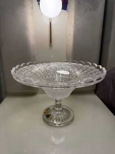 Tom xrustal meyve qabı,tezedir, öz qutusunda,qiymetinden uçuz satıram.Diametri 31sm,2 ededdir..