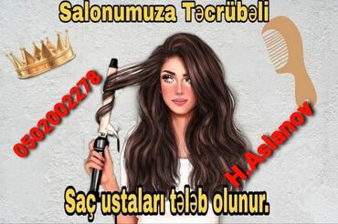 Qadın saç ustası tələb olunur, Yerin icarəsi, 1-2 illik təcrübə, Materialların təqdim olunması