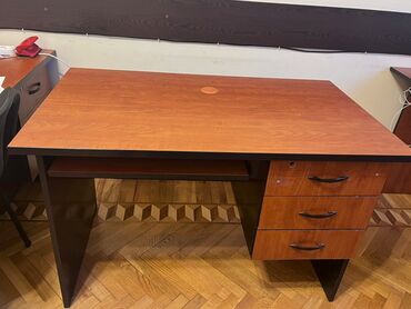 Metall karkaslı iş/ofts masası - Üst tabla: ağac teksturalı MDF/LDSP (açıq palıd rəngi) - Karkas: qara rəngli, kvadrat profil metal, U formalı dayaqlar - Ön panel: eyni teksturalı ağac dekor, masa...