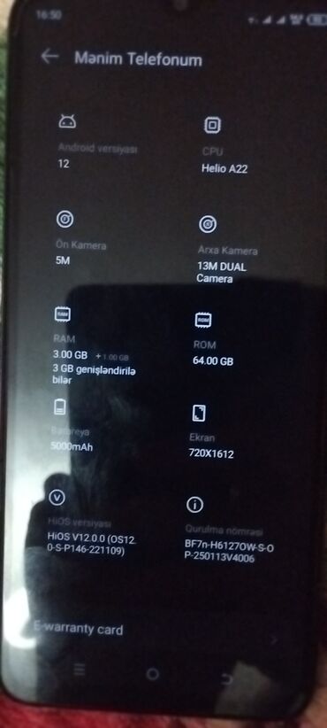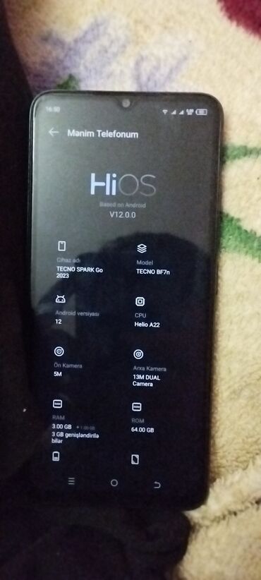 Tecno Spark go1+ - Rəng: tünd yaşıl/göy tonlu mat arxa panel - Ekran: tam ekran, üst mərkəzdə ön kamera dəliyi, Android interfeysi - Sistem: Android (Google Play, Gmail, Chrome, Google xidmətləri...