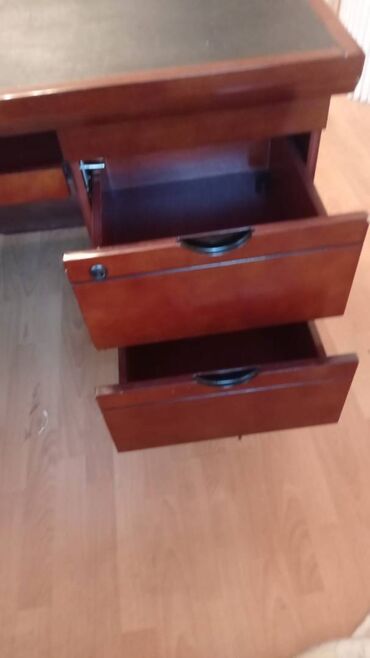 Direktor kabinet dəsti – müasir ofis üçün tam komplekt Tərkib: - Geniş iş masası: taxta teksturalı (ceviz tonları), ön hissədə metalik zolaqlı dekor, üstündə yazı üçün dəri panel. Künclər yumru iş...