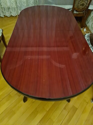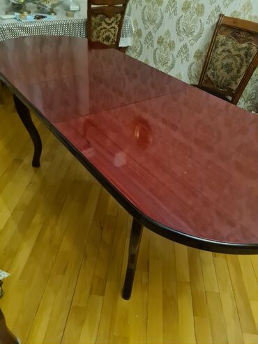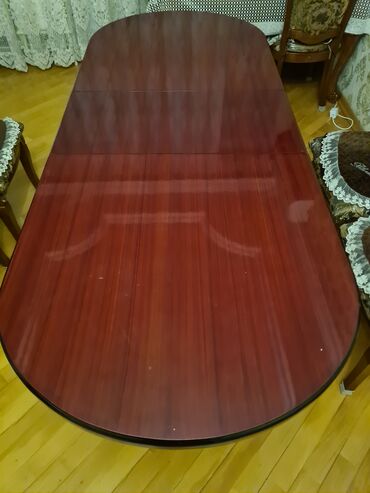 Stolun ölçüləri. eni -90sm,uzunluğu -170sm, açılanda -225sm. 6 ədəd stul. firma əmbawood. yaxşı vəziyyətdədir