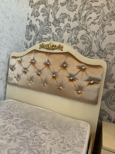 - Qızılı dekor elementləri və düyməli, məxmər effektli yumşaq başlıq