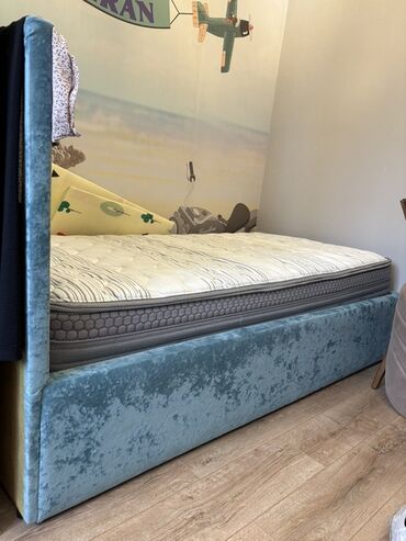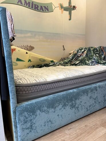 - Parça: məxmər tipli yumşaq upholstery, mavi/akvamrin çalarlarında, yüngül teksturalı