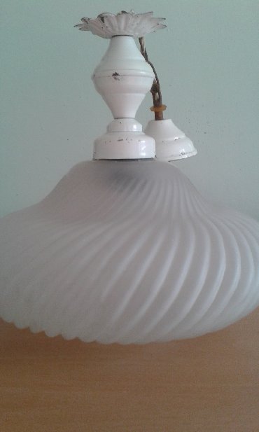 Şüşə-kristal tavan lampası (plasfon) - Forma: dairəvi, yarı-qapalı tavan tipli - Material: parlaq xrom rəngli korpus, kəsimli kristal elementlər və şüşə bəzəklər - Dizayn: ağ fon üzərində qızılı ç...