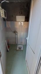 - Sanitar qovşağı: döşəmə tualeti (skvaznoy), duş sistemi və kran; kafel-metlax örtük