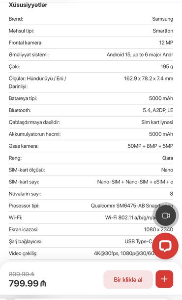 Telefon Baku Elektroniks resmi mağazadan yeni alınıb, senedi de var. nağd şekilde alınıb. Karobkası bele açılmayıb. Mağzaya Geri qaytarmaq mümkün olmadığı üçün satılır. mehsulun qaytarılması üçün her hansı qüsuru olmadığı üçün geri qaytarılması mümkün deyil) 900aznlik telefondur. Endirimde olanda alınıb 800azn e. Elandakı şekildede qiymeti qeyd edilib. Endirimde yalnız nağd alışda keçerli idi