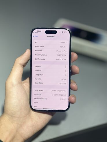 IPhone 14 Pro, 128 GB, Deep Purple, Zəmanət, Simsiz şarj, Face ID