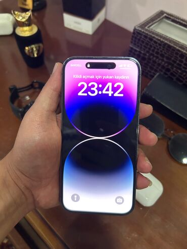 IPhone 14 Pro – Bənövşəyi (Deep Purple) Telefon yaxsi veziyyetdedi usatada olmayib Amerika stokidi LL/A seriyasidi nomre yeri olmur bularda zavod E-simdi basi cixanlar bilir nece madel olduquni pi...
