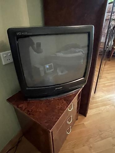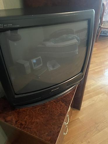 SHARP kineskop televizor + şüşəli TV stendi Məhsul haqqında: - Marka/model: SHARP Multi System (kineskop/CRT tipli) - Ekran: təqribən 21–25 düym arası, klassik qabarıq ekran - Səs sistemi: ön tərə...