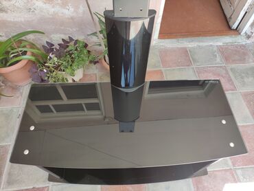 Şüşə TV stolik - Material: qara temperli şüşə səthlər, metal dayaqlar - 3 mərtəbəli konstruksiya: üst hissə TV və dekor üçün, orta rəflər DVD/TV tünər/receiver və digər avadanlıqlar üçün, alt rəf ...