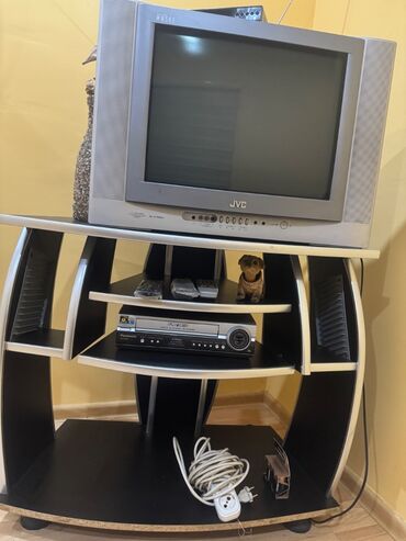 Klassik borulu televizor və şüşə TV stendi komplekti. Tərkibi: - Korpusunda stereo dinamikləri olan CRT televizor (geniş ekran, ön paneldə idarəetmə düymələri). - Üstündə 2 ədəd elektrik ştepseli ...