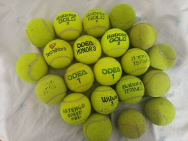- Növlər və brendlər: Babolat (GOLD 1/2/5, TEAM), Wilson 3, Tecnifibre, Artengo Speed Pro, ODEA (1 və HONOR3 yazılı toplar) və s.