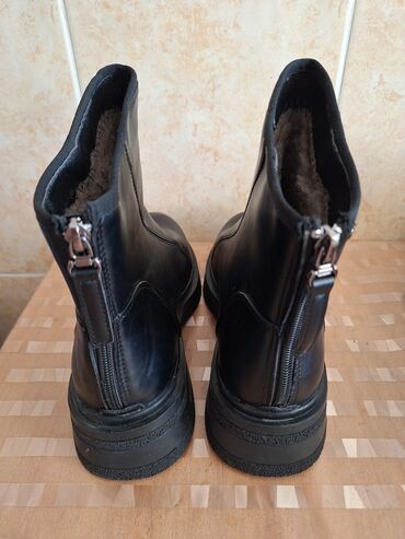 Qadınlar üçün dəbli qısa çəkmələr - Material: yumşaq nubuk , brend Sandro Vicari italiya - Rəng: tünd boz-bənövşəyi ton - Dizayn: ön hissədə geniş laklı dəri qayış və iri metal toka; tokada dekora...