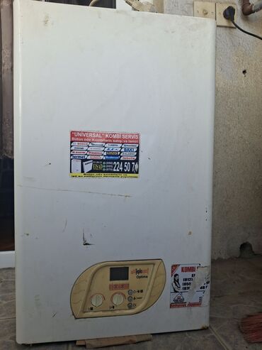 Divarmontaj qaz kombi qazanı - Tip: Divardan asılan qazla işləyən iki konturlu kombi (isitmə + isti su) - Ön panel: Mexaniki idarəetmə – iki fırladıcı tənzimləyici (istilik və isti su üçün), işə d...