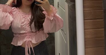 Qadın üst geyimləri – 3 fərqli model 1) Dilvin bluz - Rəng: mavi - Uzunqol, boğazlı - Yan hissələrdə büzgü və bağlama ipləri - Ölçü: S - Qiymət: 9 manat 2) H&M trikotaj bluz - Rəng: mavi - Rezinl...