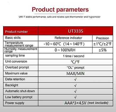 Termo-hiqromet Model: UNI-T UT 333S Portativ termohiqrometr qapalı