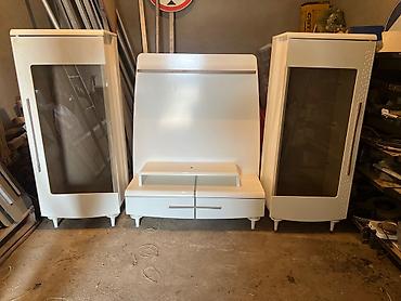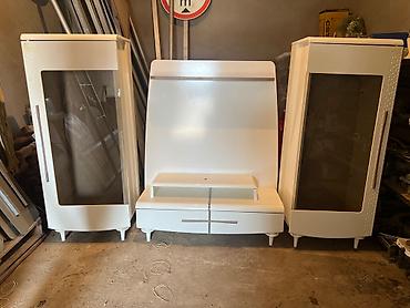 Tv stend ve Şkaflar.Türkiyə istehsalı mebellərdir.Az işlənib,yaxşı vəziyyətdədir.Cızığı qırığı yoxdur.Maşın boyası ilə boyanıb.Təcili satılır deyə bu qiymətə qoyulub.