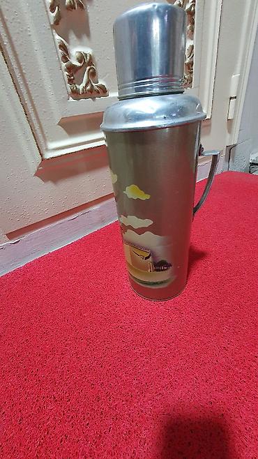 Termos içi ve çöl hissesi paslanmayan materialdan hazırlanıb .2 tutma qulpu var.çiyinnen asma ipi var . 3Lt hecmdedir.çay içme strkanı var . termos termus