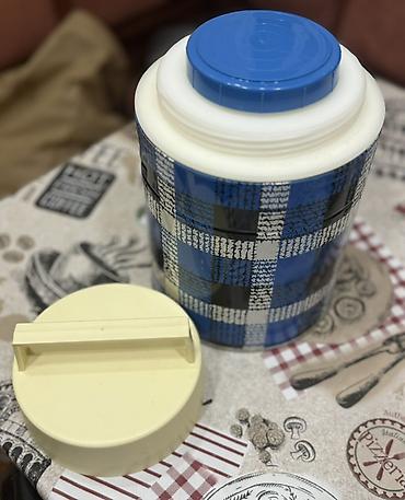 Retro metal termos “Çayka” (Термос марки «Чайка») - Material: metal gövdə, iç hissə şüşə kolba - Həcm: təxminən 1 litr (standart iri termos ölçüsü) - Rəng/dizayn: krem rəngli korpus, qırmızı çiçək...