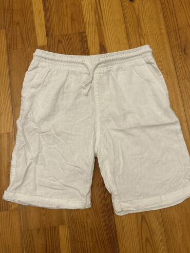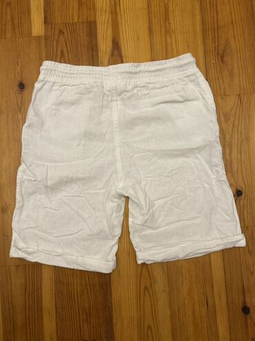 ZARA kişi şortik EUR44 - Rəng: açıq bej/ekru - Model: klassik chino şortu - Material: etiketdə “MUSSE BAUMWOLLEN” qeyd (pambıq əsaslı toxuma), yumşaq və nəfəsalan - Bəylik: düymə və fermuarlı bağ...