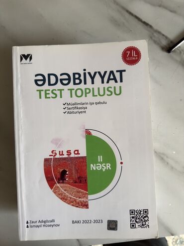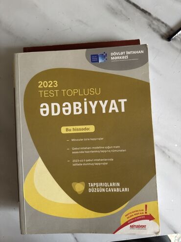 - “2023 Test Toplusu – Ədəbiyyat” (Dövlət İmtahan Mərkəzi). Mövzular üzrə tapşırıqlar, qəbul imtahanı modelinə uyğun mətn əsasında tapşırıq nümunələri, 2023-cü il qəbul imtahanlarında istifadə olunmuş tapşırıqlar. Tapşırıqların düzgün cavabları daxil edilib.