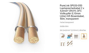 2 x 4,0 мм² площадь поперечного сечения - многожильная конструкция 0.10 диаметр - идеальная комбинация для минимальных потерь и максимального качества звука