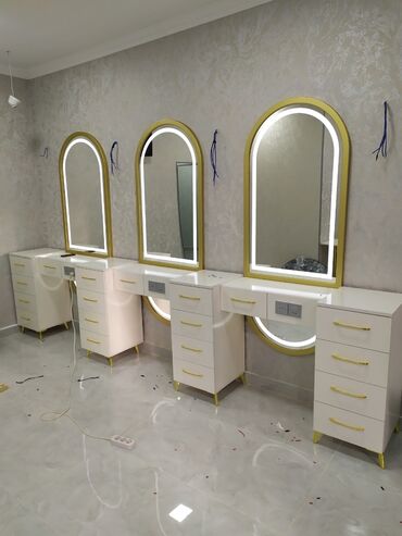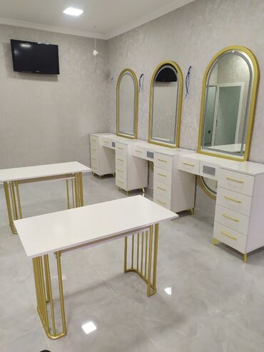 Geniş güzgülü salon masası - Rəng: ağ - Tətbiq sahəsi: gözəllik salonu, bərbərxana, vizaj küncü, evdə makiyaj/saç stansiyası - Böyük çərçivəli güzgü – geniş görüntü və iş prosesinə rahat nəzarət -...