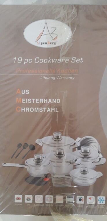 Alman malı. Yeni. Qutuda. 24sm. 9L. 18/10 Paslanmıyan polad. Qazanın dibi 2 qat. Qaz və elektrik sobasında istifadə edilə bilər. Qabyuyan maşında yumaq olar.