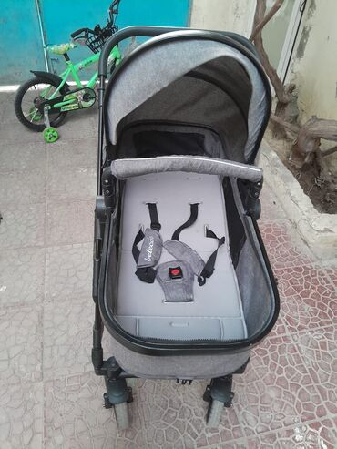 Uşaq arabası.Az istifadə olunub.Heç bir problemi yoxdur.Bütün əlavə ləvazimatları da var. İçindəki döşəklə bərabər 120manat. Ünvan: Binə qəsəbəsi Qeyd:300 manata alınıb.