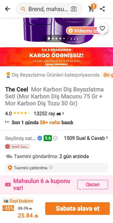 Əldə olan mehsullar size endirimle gonderilir. ya isteyen bir nece unvandan pulsuz da elde ede biler.Məhsul: The CEEL dəriyə qulluq kremi dəsti - The CEEL Skin Whitening Cream – 50 ml • Tünd lək...