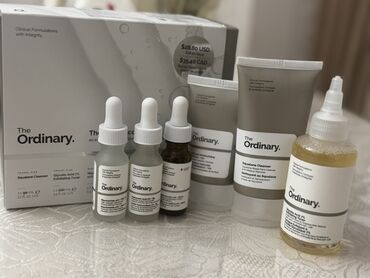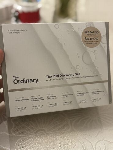 Qutu: The Ordinary – The Mini Discovery Set. Üzərində göstərilən satış dəyəri: $28.80 USD / $35.40 CAD. Kliniki tərkiblərə əsaslanan sadə və effektiv gündəlik dəriyəqulluğu üçün ideal tanışlıq dəsti.