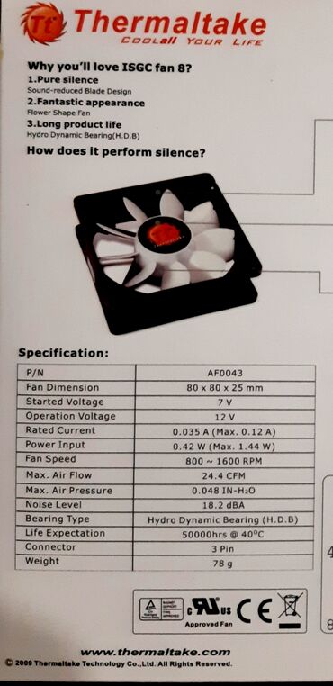 Thermaltake ISGC Fan 8 – Pure Silence seriyası, P/N: AF0043