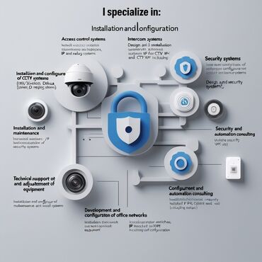 Yüksək keyfiyyətli video-nəzarət, girişə nəzarət və interkom sistemlərinin peşəkar qurulması, eləcə də ofis şəbəkələrinin etibarlı konfiqurasiyası üçün kompleks xidmət. Məqsəd – obyektinizin təhlükəsizliyini və şəbəkə sabitliyini təmin edən, gələcəkdə genişlənməyə açıq həll.