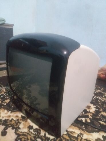 Panasonic kineskop televiziya, 17 düym ekran. Üstündə orijinal pultu var. Ön paneldə idarəetmə düymələri (açma/söndürmə, səs, kanal dəyişmə və menyu). Sağ-sol tərəflərdə daxili dinamiklər. Ön hissə...