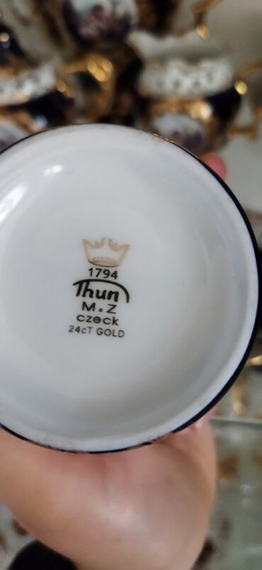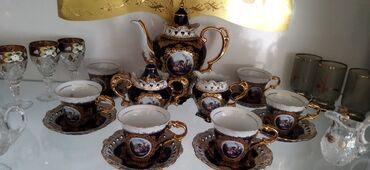 Kahla porselen çay-servis dəsti - Almaniya istehsalı Kahla (Made in GDR) damğalı. - Klassik barok üslubunda dekor: mirvari parıltılı şir, qızılı detallı qulplar və qapaq fiqurları, romantik səhnəl...