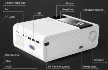 Mini proyektor – portativ, ağ korpuslu model. Xüsusiyyətlər və girişlər: - HDMI girişi (HD işarəli): noutbuk, TV box, oyun konsolu və s. üçün - USB port: faylların birbaşa USB daşıyıcısından oxunm...