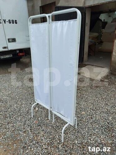 - Katlanabilir tibbi paravan: 2 bölməli, metal karkaslı, ağ parça örtüklü. Klinik, prosedur otağı və peyvənd məntəqələri üçün məxfiliyi təmin edir. Yüngül konstruksiya sayəsində daşınması rahatdır.